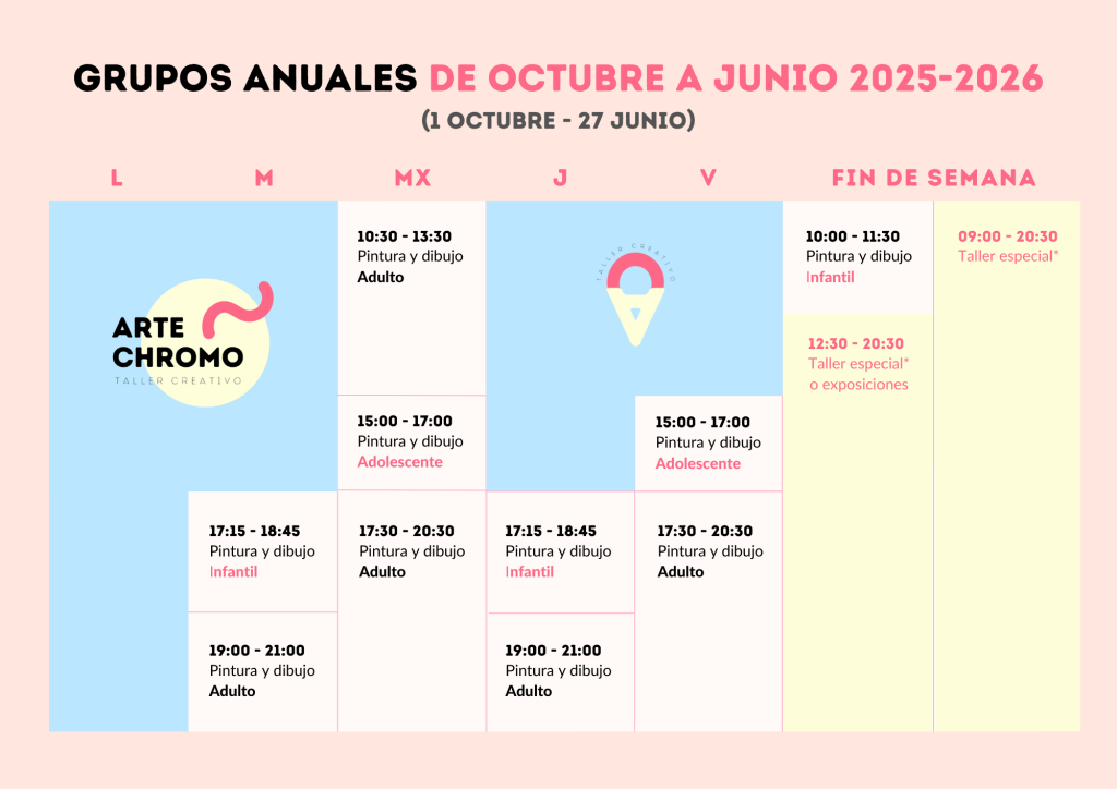* El horario de Arte Chromo puede variar en función de la demanda de un curso para otro.